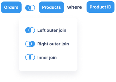 Визуальные join’ы, аггрегирующие функции и фильтрация дают бизнес-пользователям и аналитикам инструменты для свободного исследования данных.